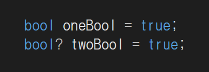 oneBool은 일반 bool 변수지만, twoBool은 Null값이 들어갈 수 있는 Nullable변수이기 때문에